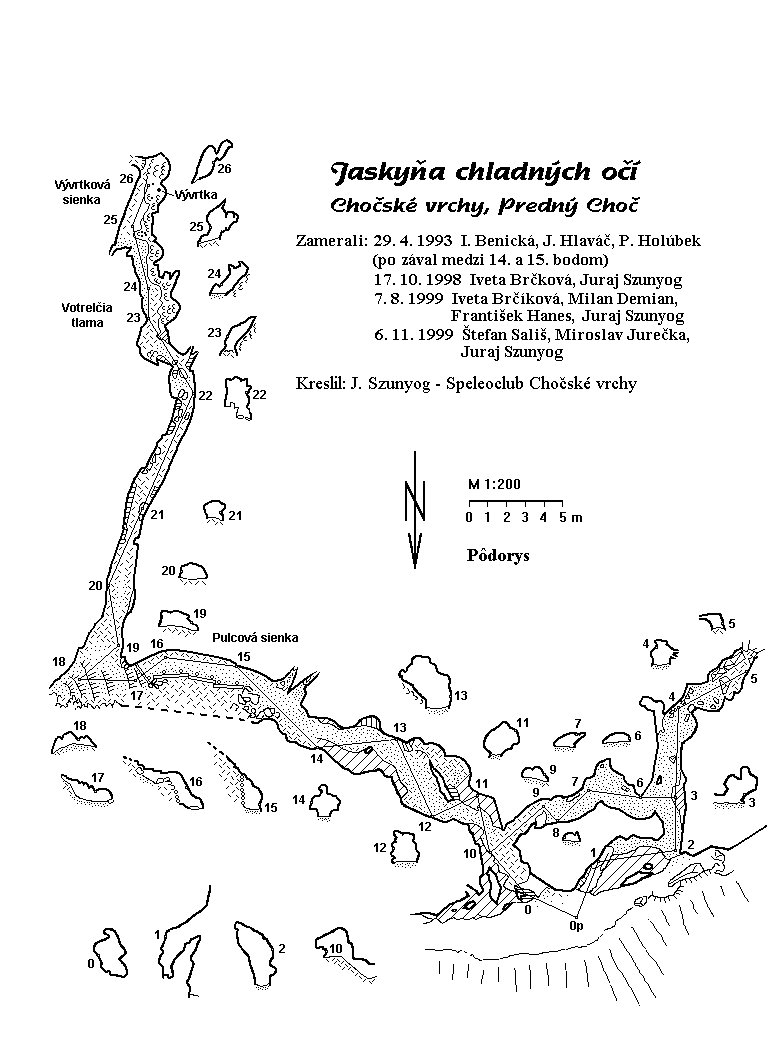 Obidve hlavné vetvy tvoria riečne modelované chodby s priemernou výškou 1,5 m. Jaskyňa pravdepodobne odvodňovala svahy Predného Choča a potom, ako sa masív brala prelomil, voda sa zastavila a našla si iné cesty, až vyrazila vo vyvieračkách o 100 výškových metrov nižšie, Dno jaskyne tvorí typické podlahové koryto, miestami vidno náznaky stropného koryta a ku koncu sú zarezané hlboké meandre. Dno tvorí ostrohranná sutina a prepojka má piesčitý sediment.